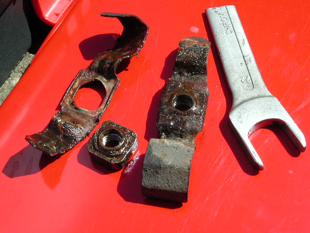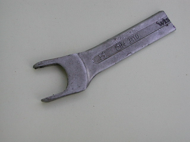 Als erster, für den Fall der Fälle, habe ich einen "Spezialschlüssel" gebaut um die Mutter am Halteklip (137) gegenzuhalten, wenn beim Ausbau der Schraube (134) das Blech des Halteklips zerstört wird (was in der Regel immer passiert, da sich an der Schraube und Mutter Rost und Dreck von vielen Jahren gesammelt hat.). Der "Spezialschlüssel" sollte nicht länger als ca. 11cm sein. Dazu aber später mehr.